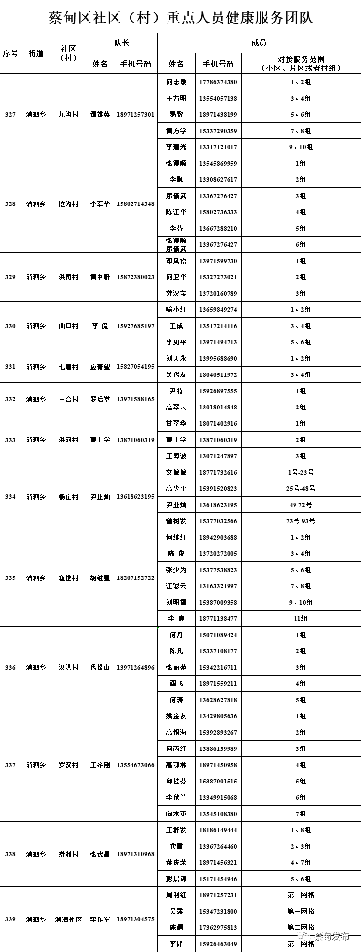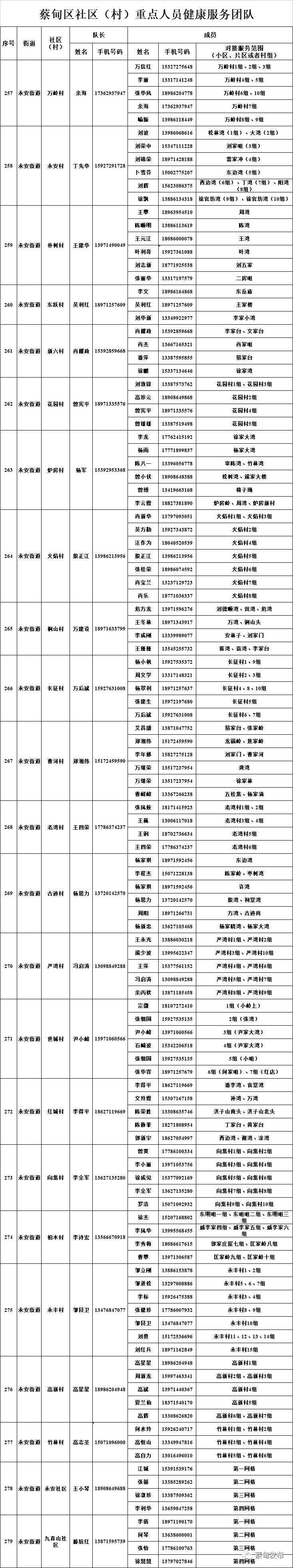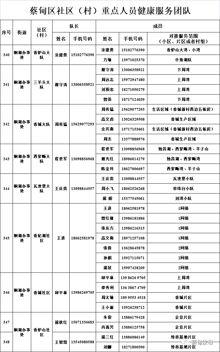 现将全区348个社区(村)重点人员健康服务团队信息及24小时联系方式等告知广大居(村)民,需要时可以及时联系。
