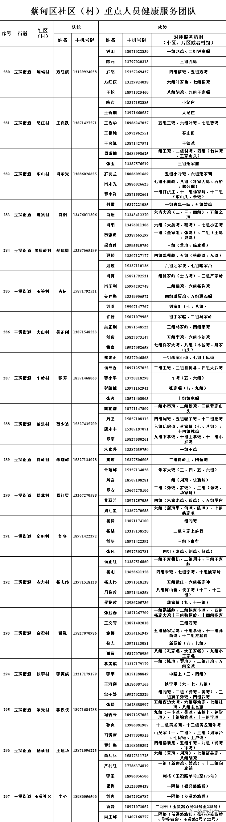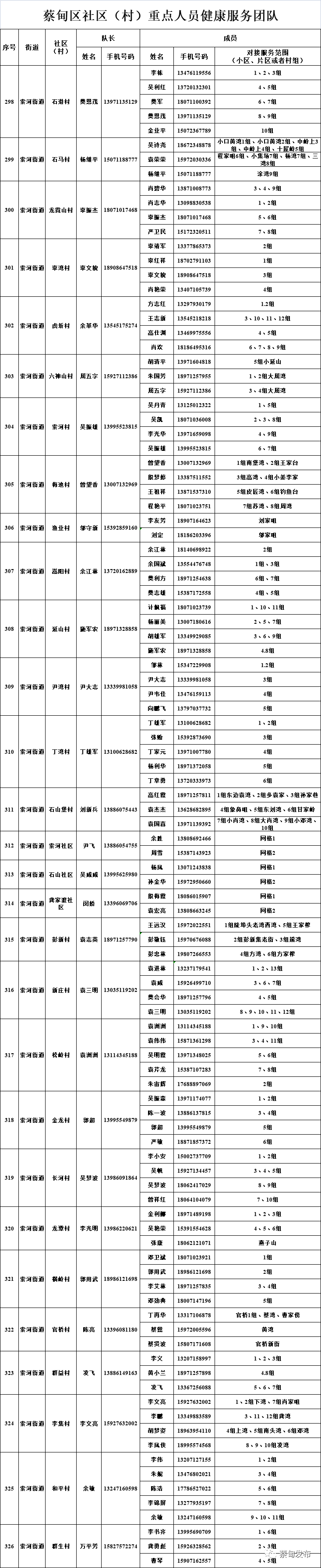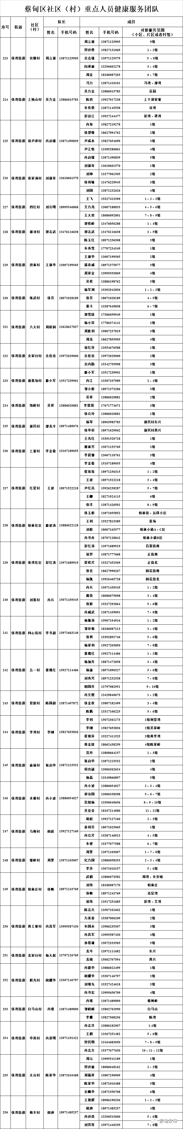 现将全区348个社区(村)重点人员健康服务团队信息及24小时联系方式等告知广大居(村)民,需要时可以及时联系。