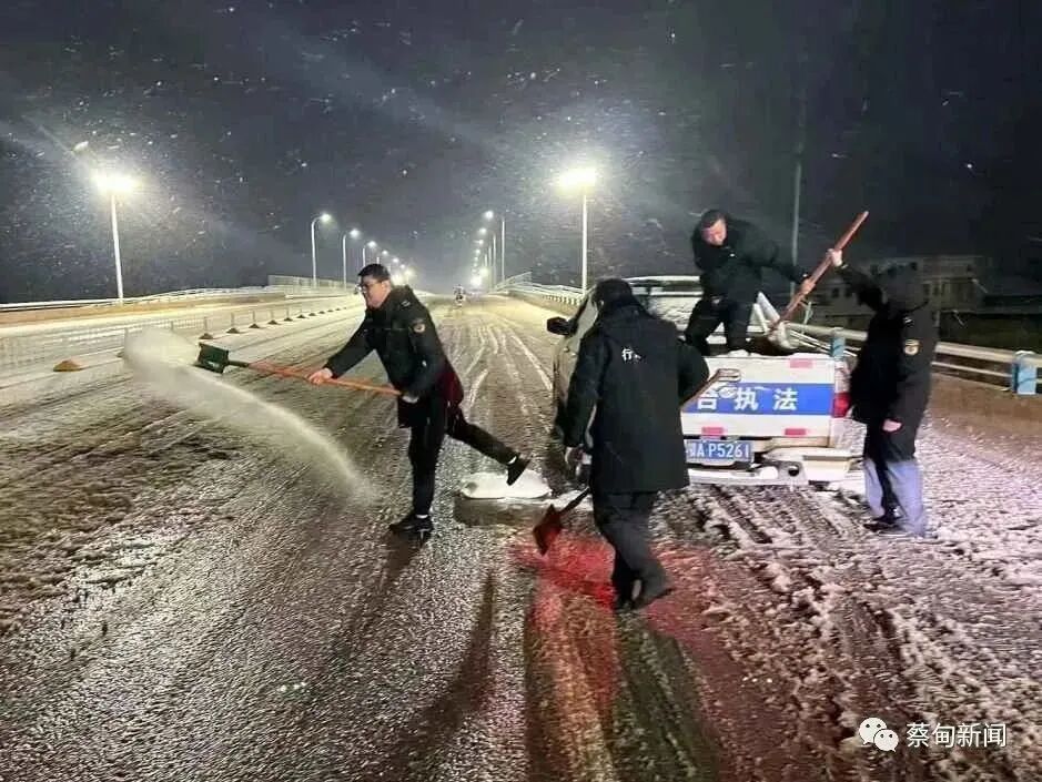 截至目前,蔡甸区共出动城管、交警人员500余人,机械车辆90台次,铺设毛毡500条,撒融雪剂150吨,处理结冰积雪20处。目前,全区道路、桥梁无明显积雪,群众出行平安,交通秩序正常。