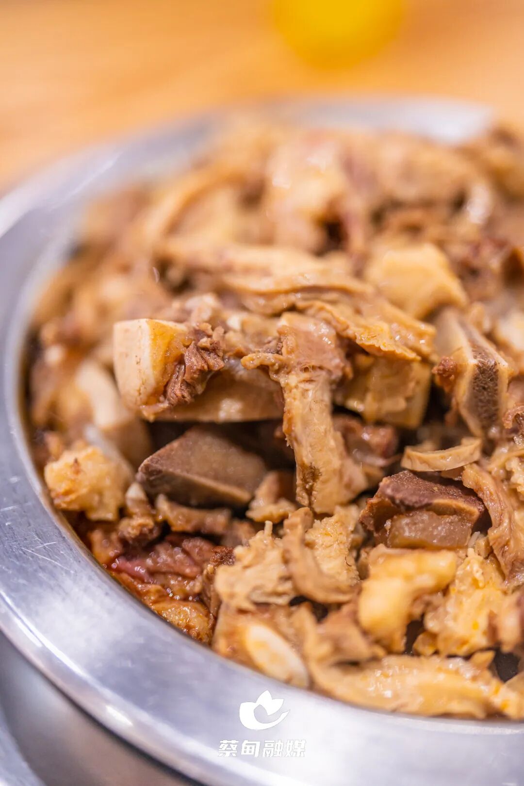 不荤腥油腻,水分少,色泽润亮,可爆炒,可凉拌,新农牛肉在餐桌上独当一面;百叶、牛肚、牛筋、牛腱,也各有口感;更令人眼亮的是牛骨,连肉带筋,咸香绵长,拿起就放不下,啃得带劲时,连聊天的空闲都没有。