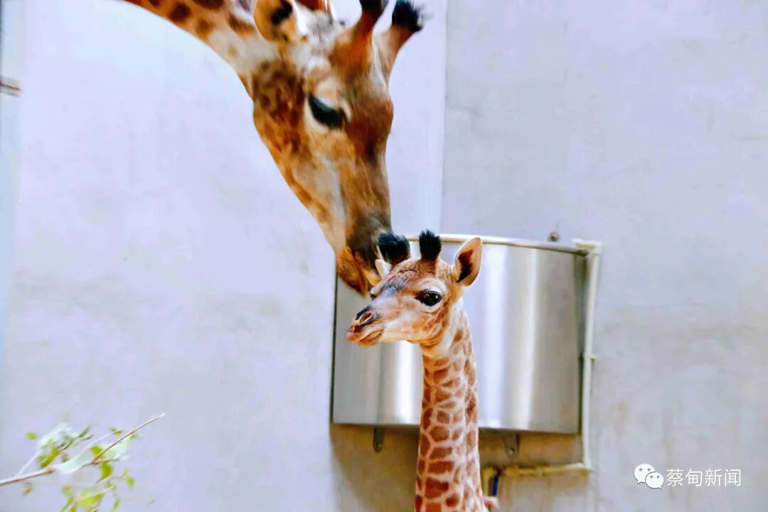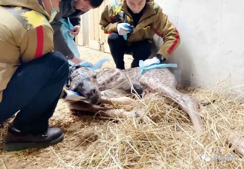 刚出生的小长颈鹿宝宝身高1.7米,发育良好。小鹿顺利坠地后,长颈鹿妈妈就会用鼻子催使小鹿开始微弱地活动。中午11:30,长颈鹿宝宝经过不断尝试,完成了首次独立站立,并顺利喝上了第一口母乳。