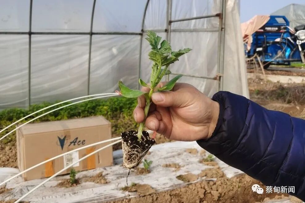 时下,正值藜蒿采收季节,也是西甜瓜种植季节。塑料大棚的两边种的是刚收完的藜蒿,已长出新苗。几名工人正忙着在中间的土壤里栽种着从洪北育苗场购回的西甜瓜苗,小心翼翼又手法娴熟。区农业局派出的专家团队正在指导和记录纳入国家地理标志农产品登记管理的蔡甸西甜瓜从洪北原种场起苗到金鸡村定植的全过程。