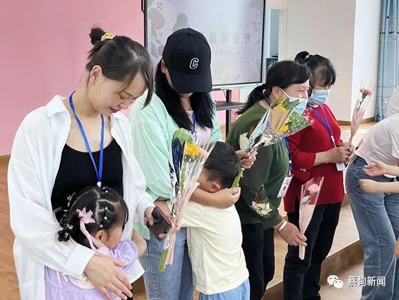 活动中,社区的小朋友拿着整理好的旧积木、玩具车、娃娃等闲置物品前来兑换鲜花,并第一时间送给自己的妈妈、奶奶,表达对她们的爱。