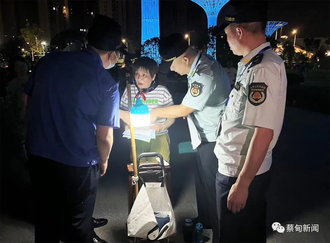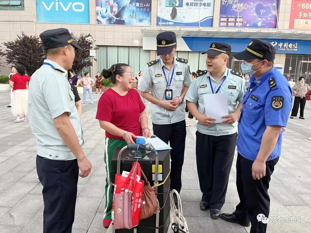 在莲花湖大道沿线、蔡甸大街沿线、汉阳大街沿线、工农路交叉口及临嶂大道地铁站广场执法人员向跳广场舞的市民宣传发放“静音护考”倡议书,呼吁广大“舞民”以实际行动“静音护考,助力圆梦”。
