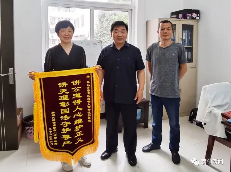 6月16日,蔡甸沁园铭城综合门诊部负责人吴女士将一面锦旗送到了蔡甸区劳动人事争议仲裁院,并手写一份“赞美词”表达对该院高效办案、维护微小企业合法权益的感激之情。