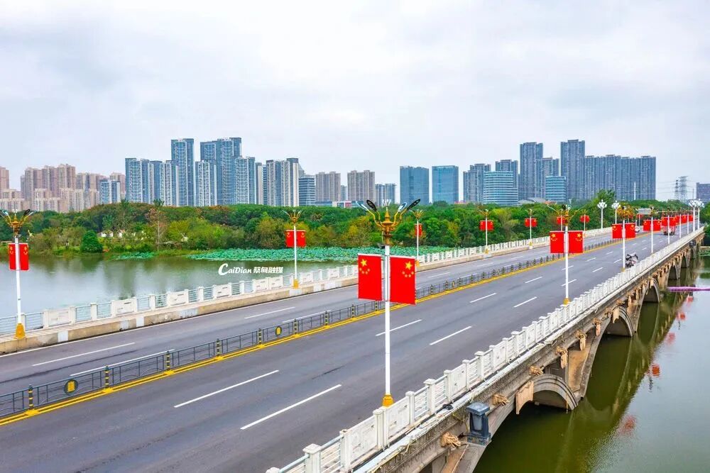 据介绍,为营造中秋国庆双节浓厚的节日氛围,蔡甸区城管执法局对蔡甸城区新天大道、知音湖大道、五贤路、莲花湖大道等12条主要道路张挂国旗1900余套。同时,各街乡也纷纷响应,在各主次干道挂起国旗,表达对祖国最诚挚的祝福。