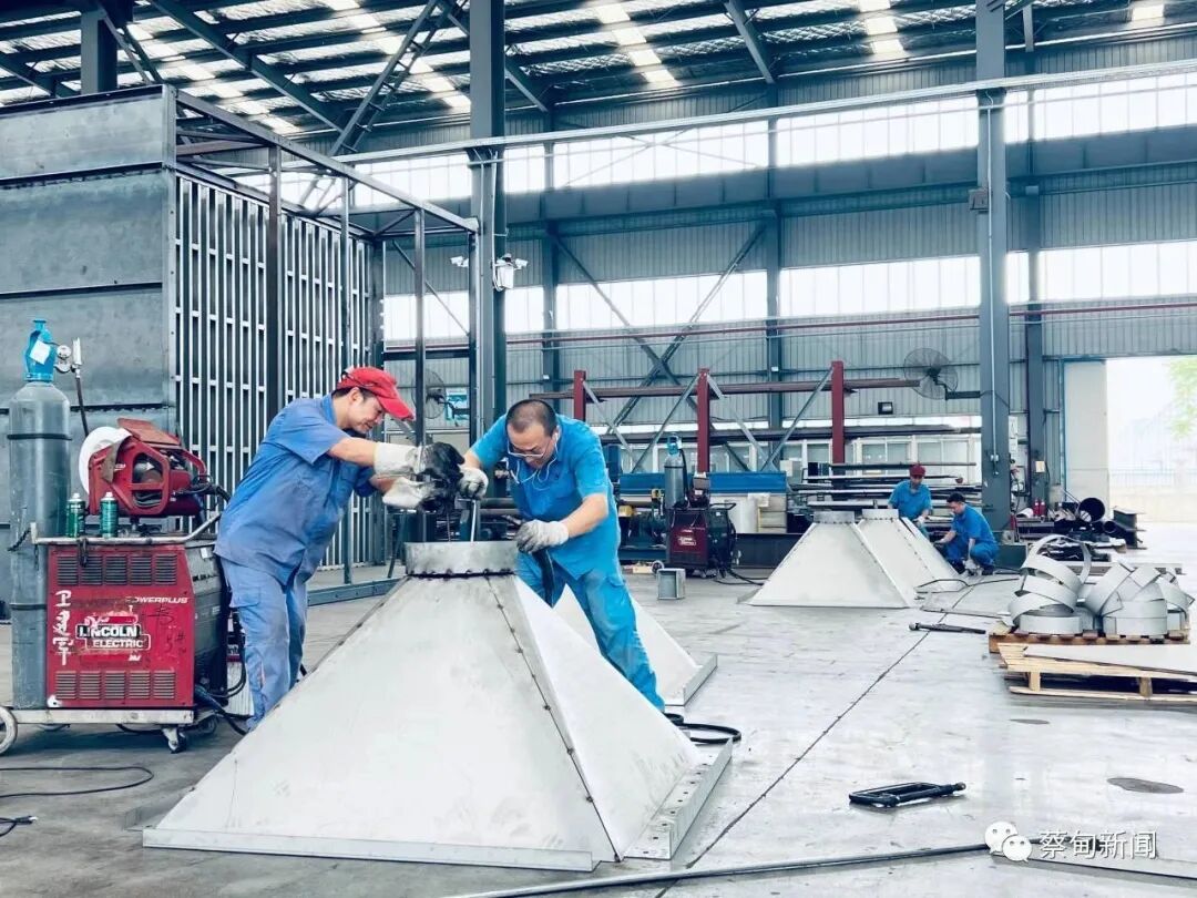 在8000平米的车间内,员工们有条不紊地进行着原材料运输、零件切割、拼装焊接、机电安装等工序,一派热火朝天的蓬勃景象。