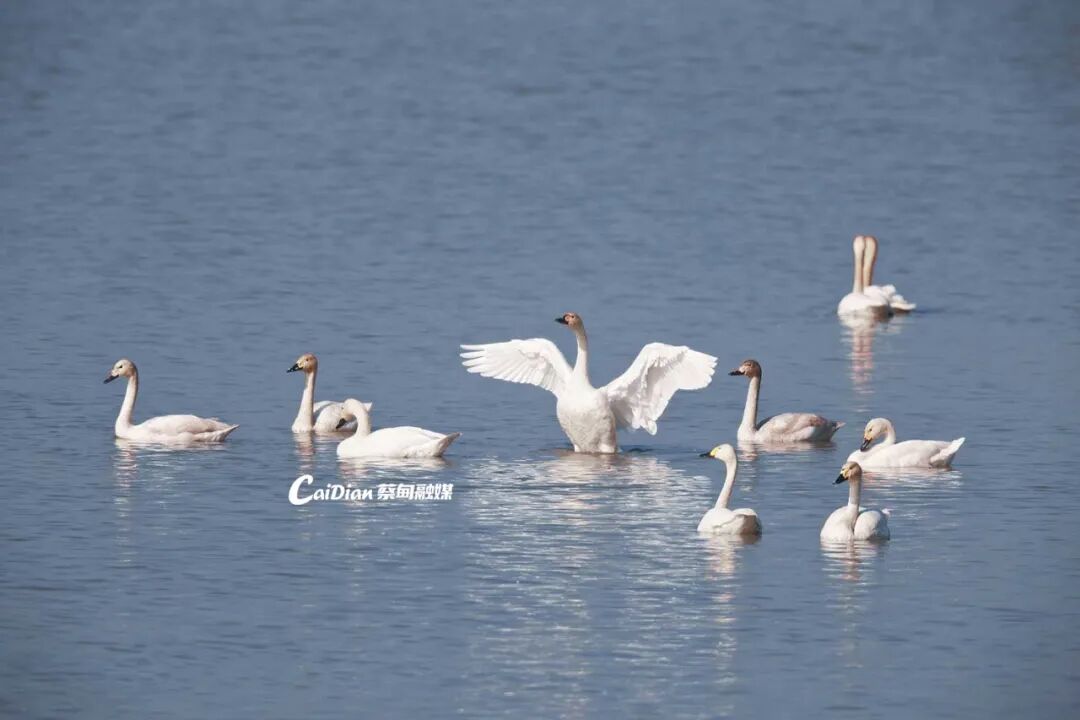▲小天鹅展翅沉湖