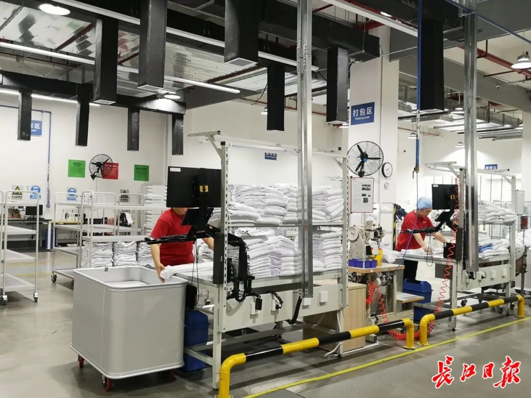 在林斯特龙武汉工厂,洗涤烘干区、打包区、暂存区、出货口等功能分区依次排布,工人正在打包区将一件件清洗烘干完成的工作服过检打包。林斯特龙武汉工厂运营经理周然凯介绍,林斯特龙集团1848年成立于芬兰,是全球纺织品服务领域领军企业,在全球23个国家拥有80多家工厂,覆盖医疗、食品、电子、化工、汽车等多个行业。