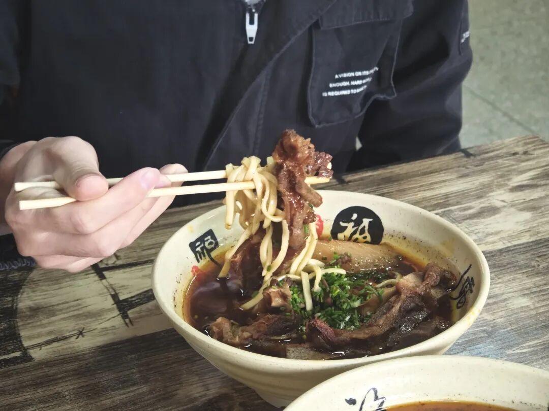 第二天早上,可选择园区不远处的垸子湾生态农庄,品尝地道的牛骨头面或牛肉面。熬煮数小时的牛骨汤奶白浓郁,吸饱汤汁的面条筋道爽滑,配上大块软烂的牛肉,一口下去暖透全身。